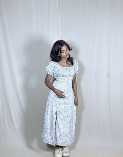 Ideal for brunch dates, outdoor gatherings, daytime events, or simply capturing dreamy, aesthetic photos, this dress blends comfort with effortless sophistication. Whether dressed up with heels or styled casually with flats, it’s a versatile piece that adds soft elegance to any wardrobe.